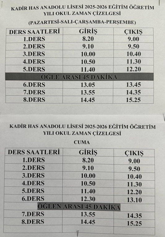 Okulumuz zaman çizelgesi